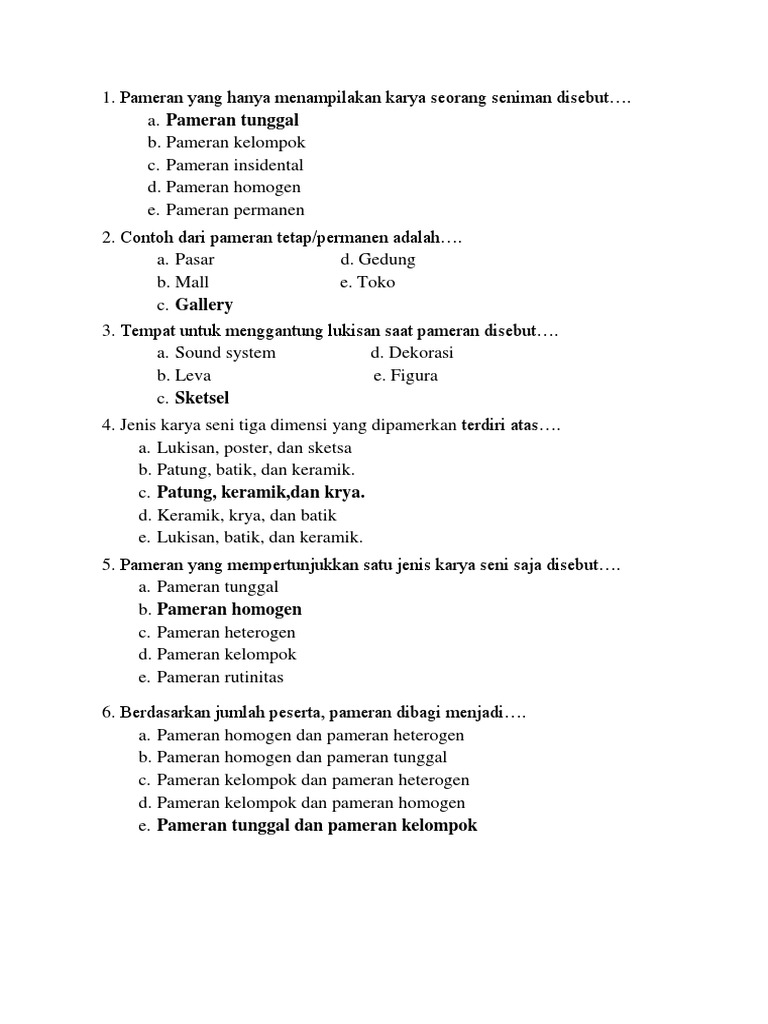 Kepanitiaan pameran yang bertugas menyampaikan informasi adalah…. Tempat informasi mengenai segala hal yang berkaitan dengan pameran. Fokus apresiasi dalam seni kriya yaitu …. Pameran homogen dan pameran heterogen. Pameran yang mempertunjukkan satu jenis karya seni saja disebut….